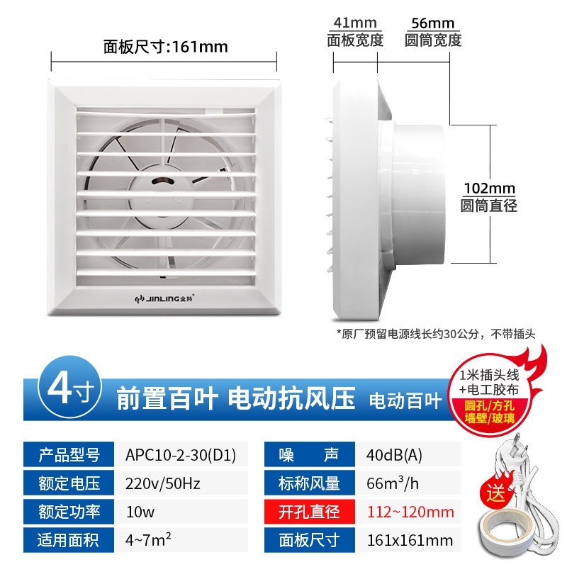 金羚电动百叶窗户式排气扇家用卫间排风扇强力静音厕所换气扇圆生