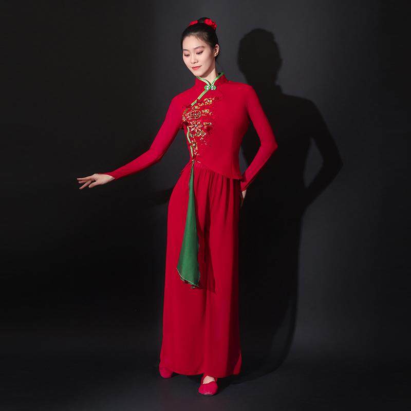 秧歌服演出服女2025新款胶州秧歌舞广场舞服装套装扇子舞红色喜庆