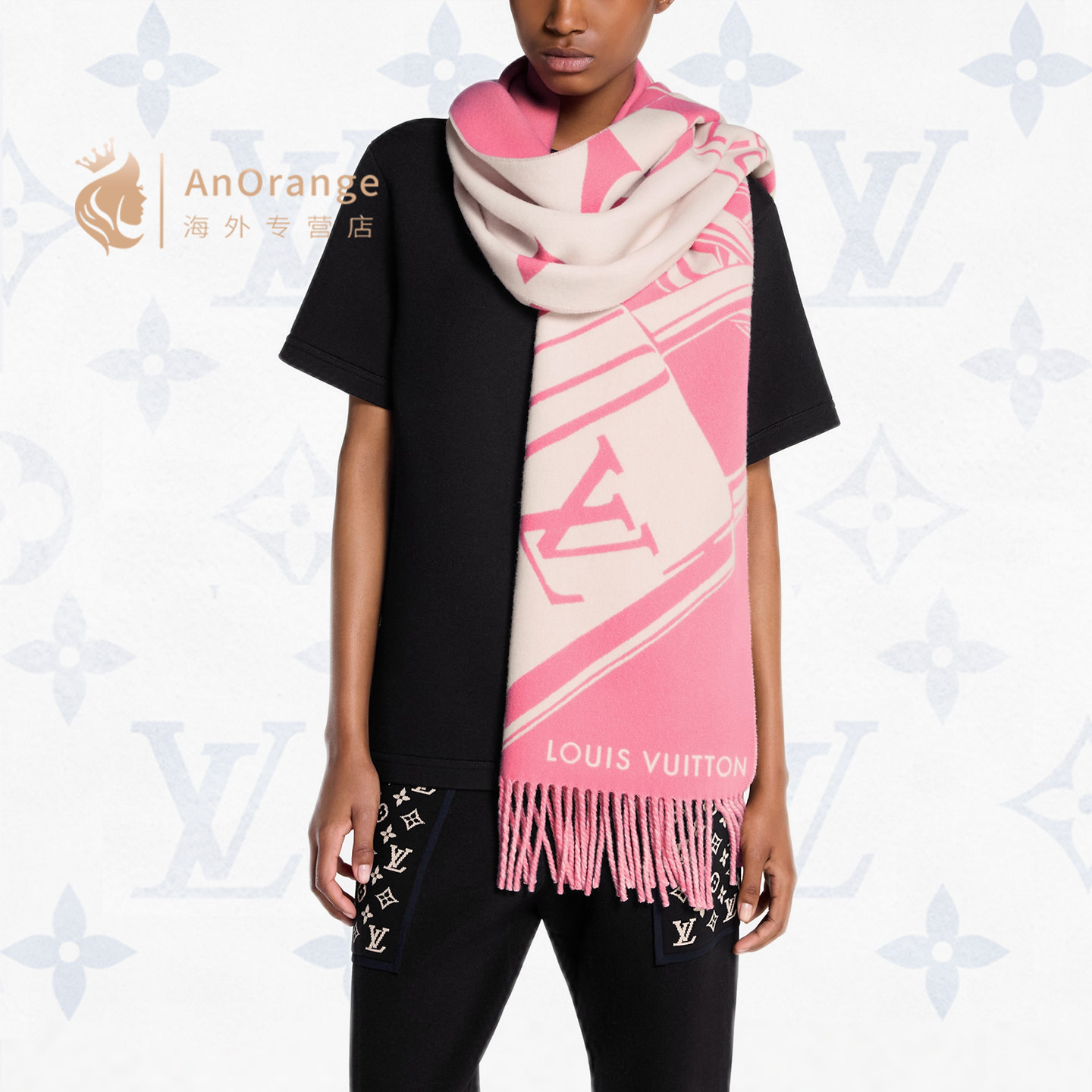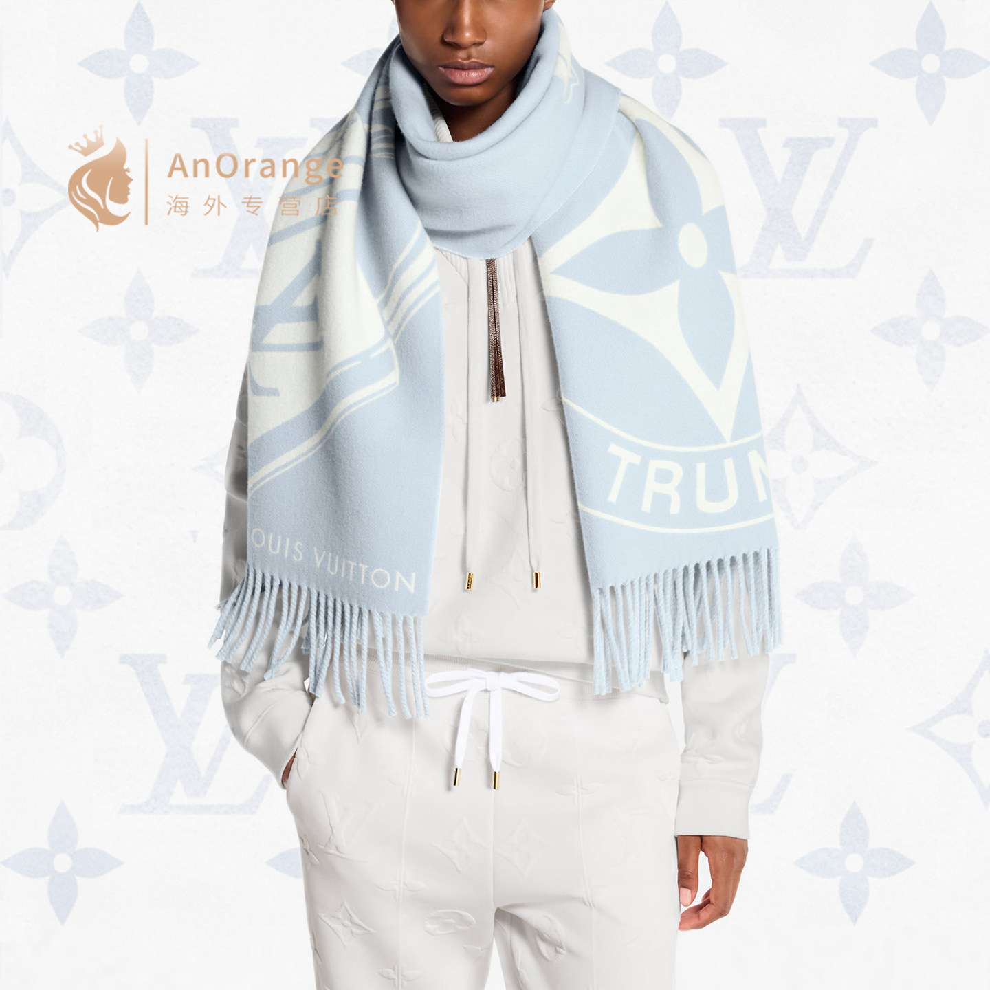 路易威登LV联名羊绒流苏挂锁围巾