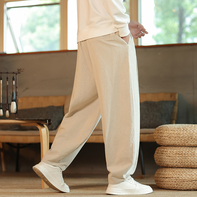 棉麻灯笼裤男黑色古装汉服裤子民国风唐装道裤武士舞蹈演出长裤老