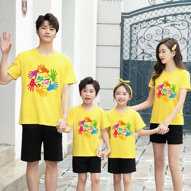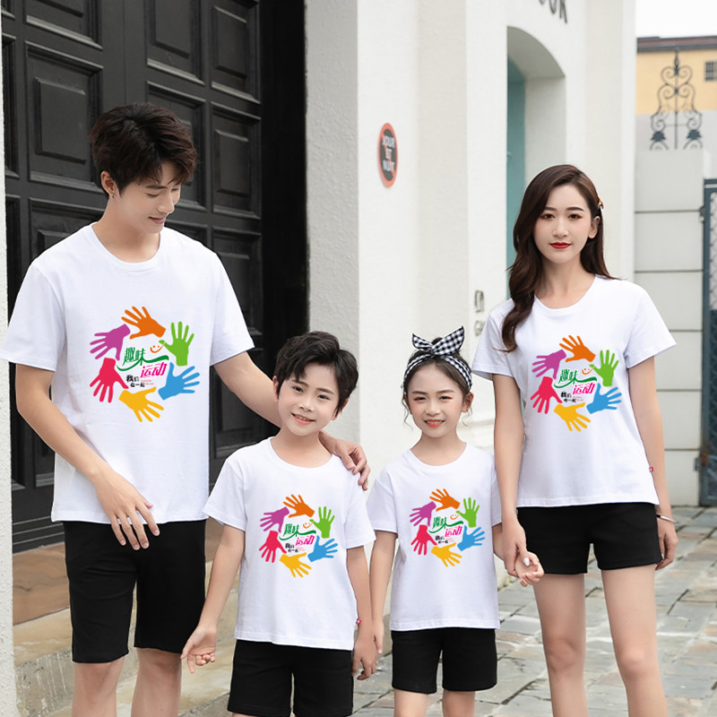 趣味运动印花亲子装t恤夏季一家三口短袖定制logo班服幼儿园园服
