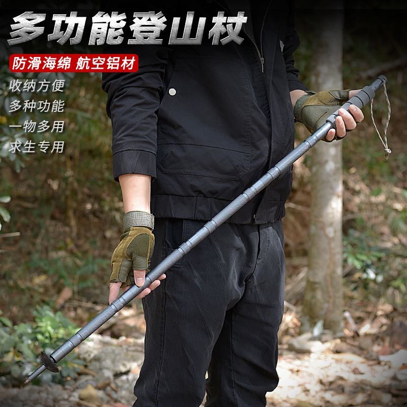 德国进口新款折叠多功能登山杖户外徒步远足防身棍山地野营套装拐
