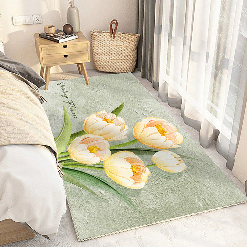 花卉地毯卧室床边毯奶油r风少女房间毛绒客厅短绒家用脚垫长条主