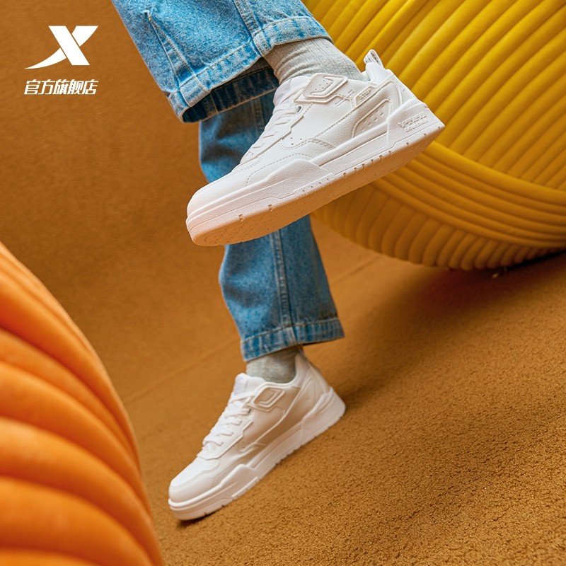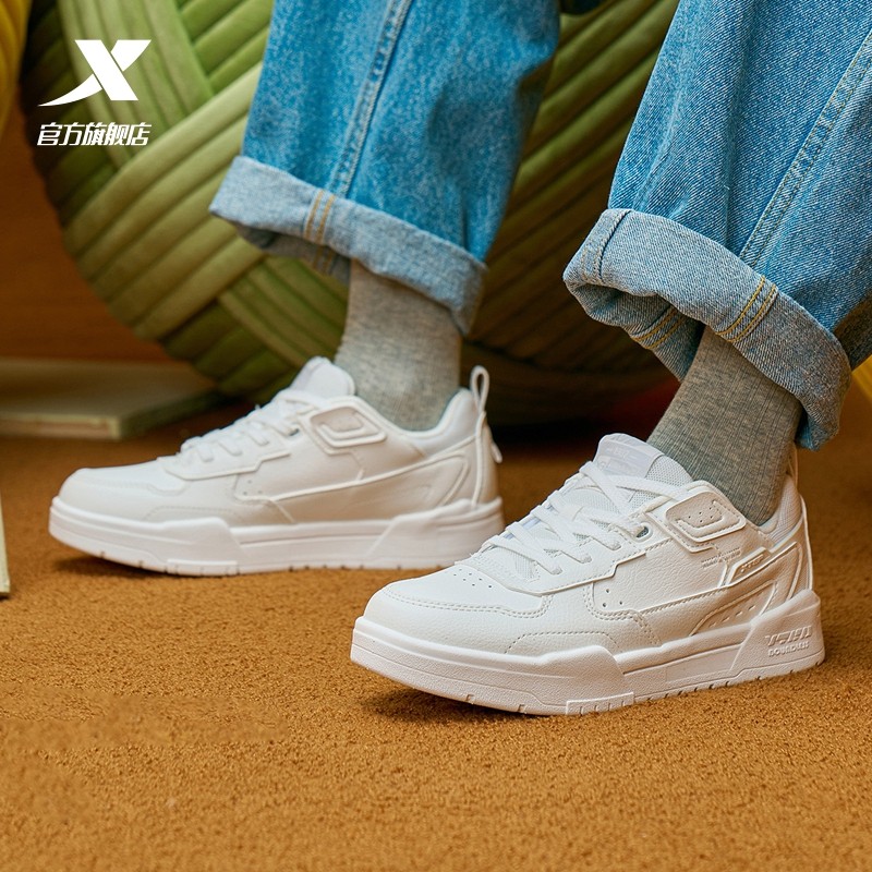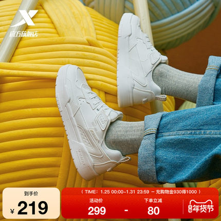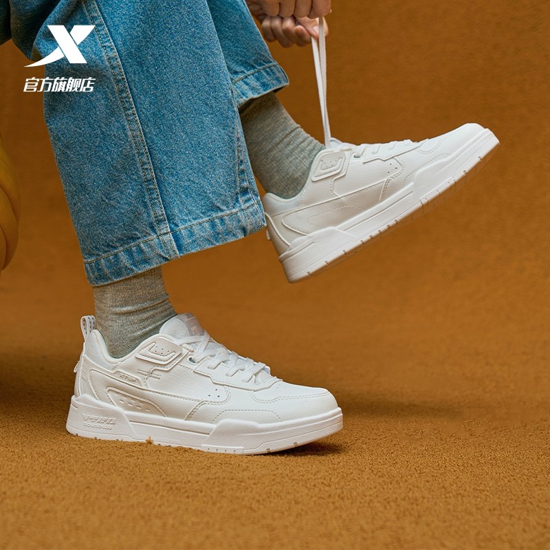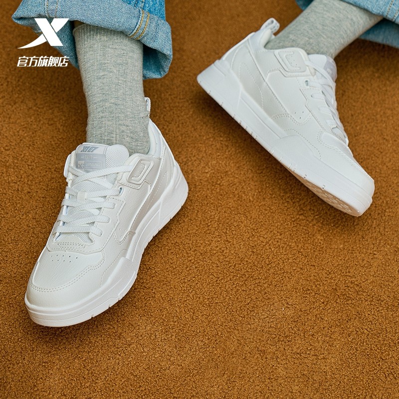 特步女鞋板鞋运动鞋冬季革面保暖小白鞋潮流百搭女士鞋白色休闲鞋