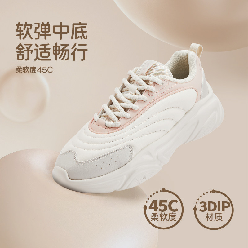 361度运动鞋女鞋2025秋季新款复古休闲鞋软底舒适老爹鞋革面鞋子
