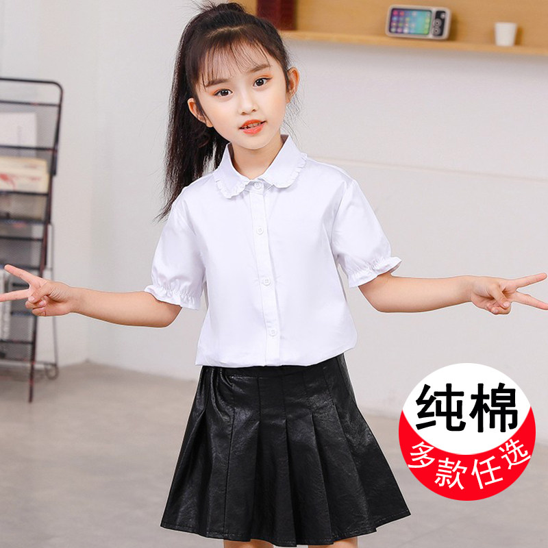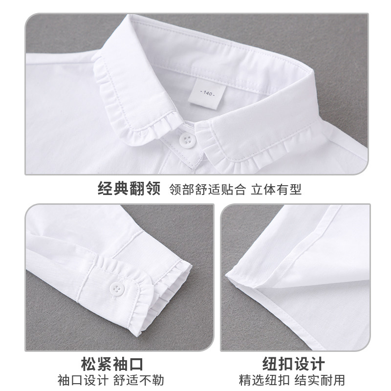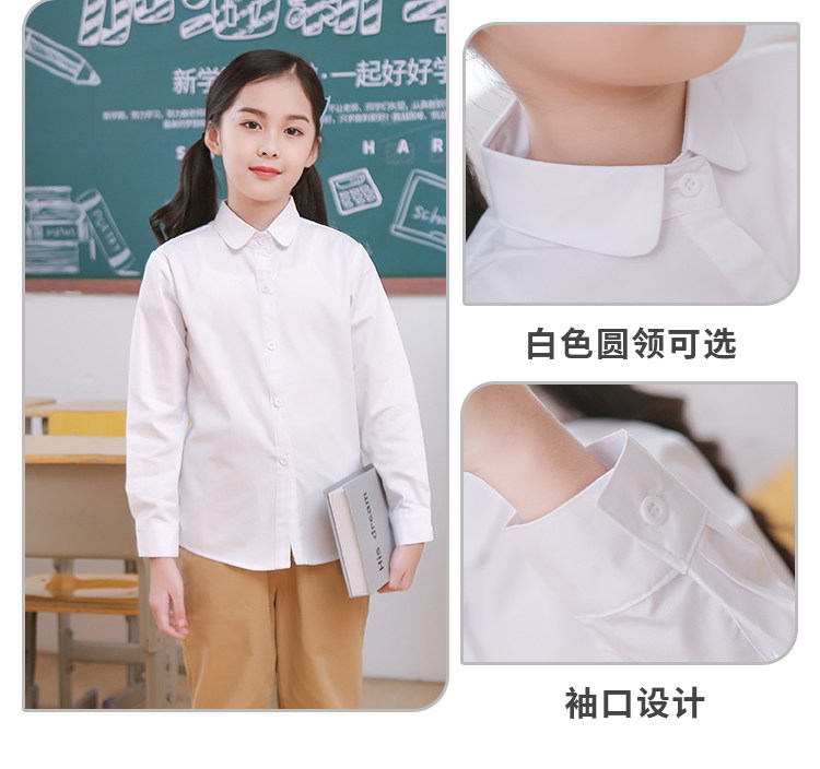 女童白衬衫长袖纯棉春秋儿童白色衬衣小学生中大童校园表演出校服