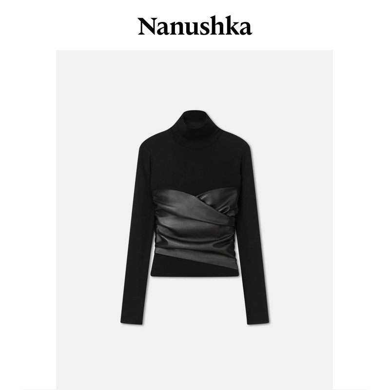 【甄选折扣】NANUSHKA 女士 KYNLEE 垂褶拼接高领上衣