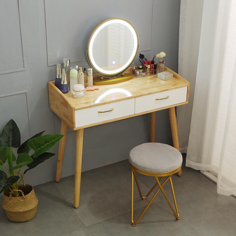 全实木轻奢化妆台简约现代梳妆台北欧书桌整装化妆桌带灯多功能