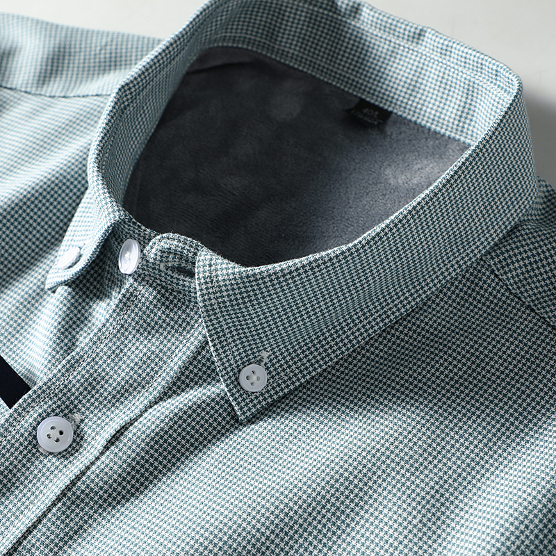 秋冬新款高级重磅全棉时尚千鸟格加绒保暖打底衬衣男商务休闲衬衫