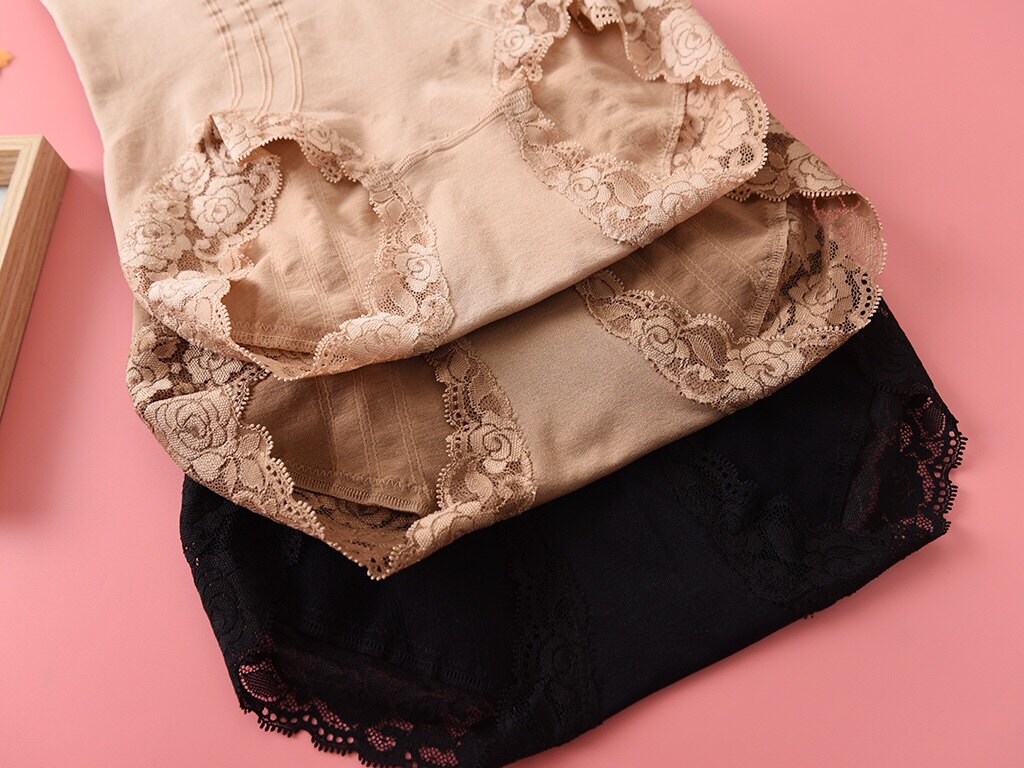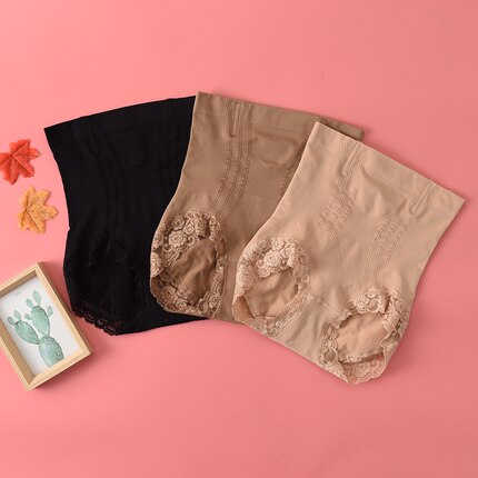 日系女收腹内裤高腰提臀塑形美体三角裤蕾丝边无缝莫代尔纯色底裤