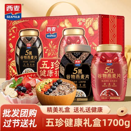 西麦5黑5红谷物有机猴头菇燕麦片礼盒装冲泡早餐年货送礼礼盒批发