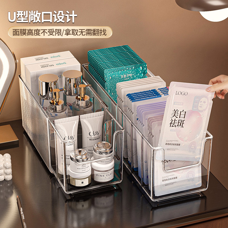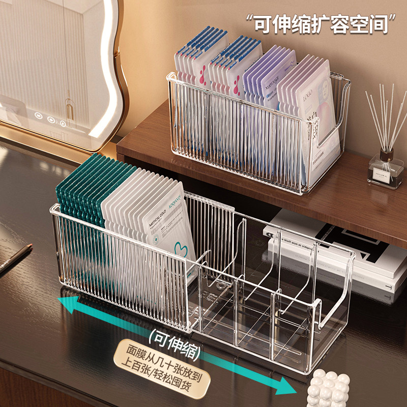 面膜收纳盒亚克力化妆品分格盒透明大容量桌面可伸缩护肤品置物架