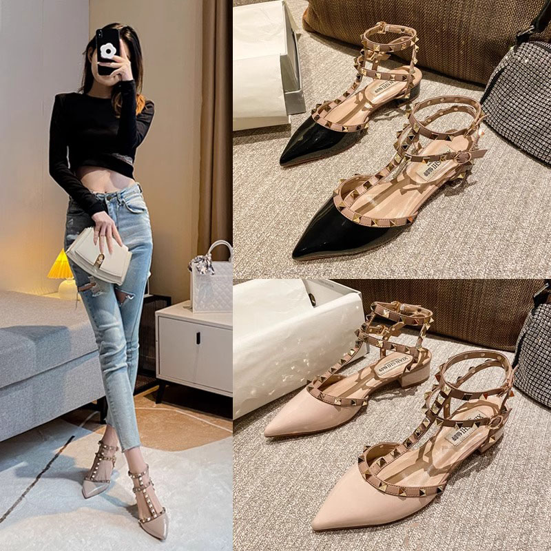 包头铆钉凉鞋女秋款2025年新款秋季粗跟罗马时装尖头高跟单鞋平底