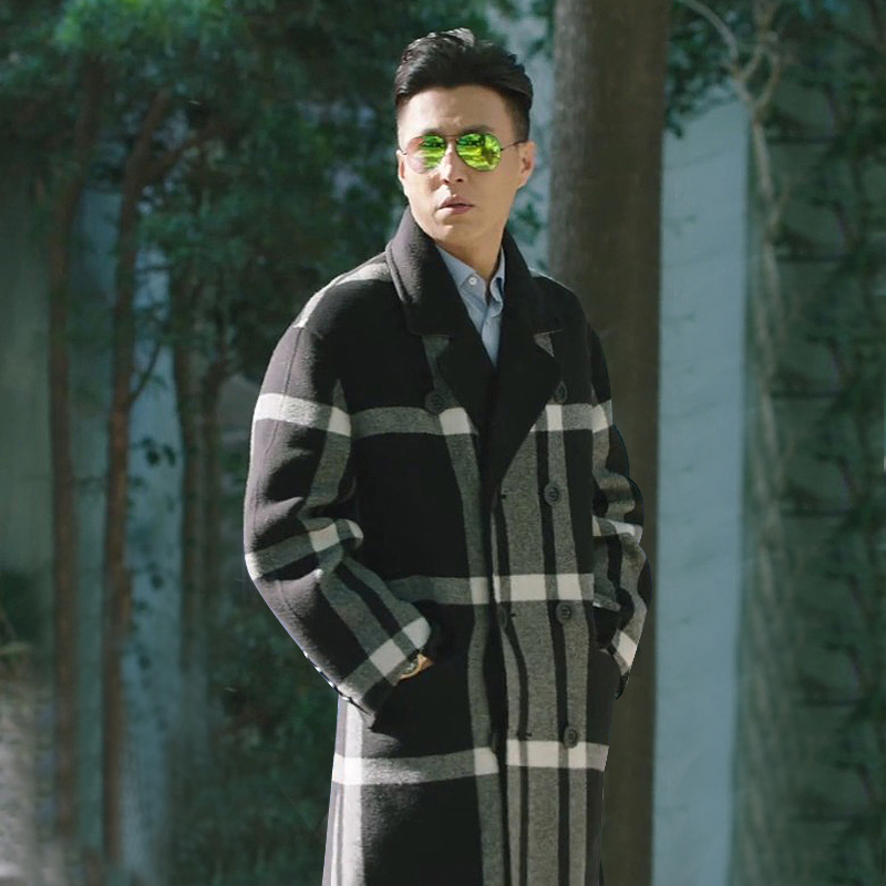 秋冬季双面格子羊绒大衣男士翻领双排扣中长款风衣休闲时尚商务潮