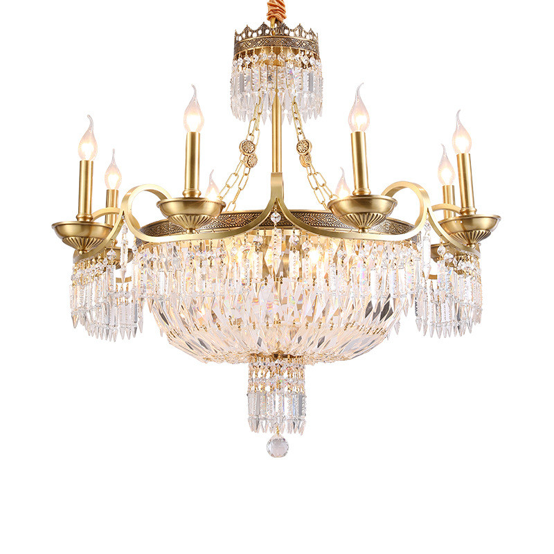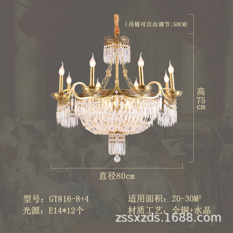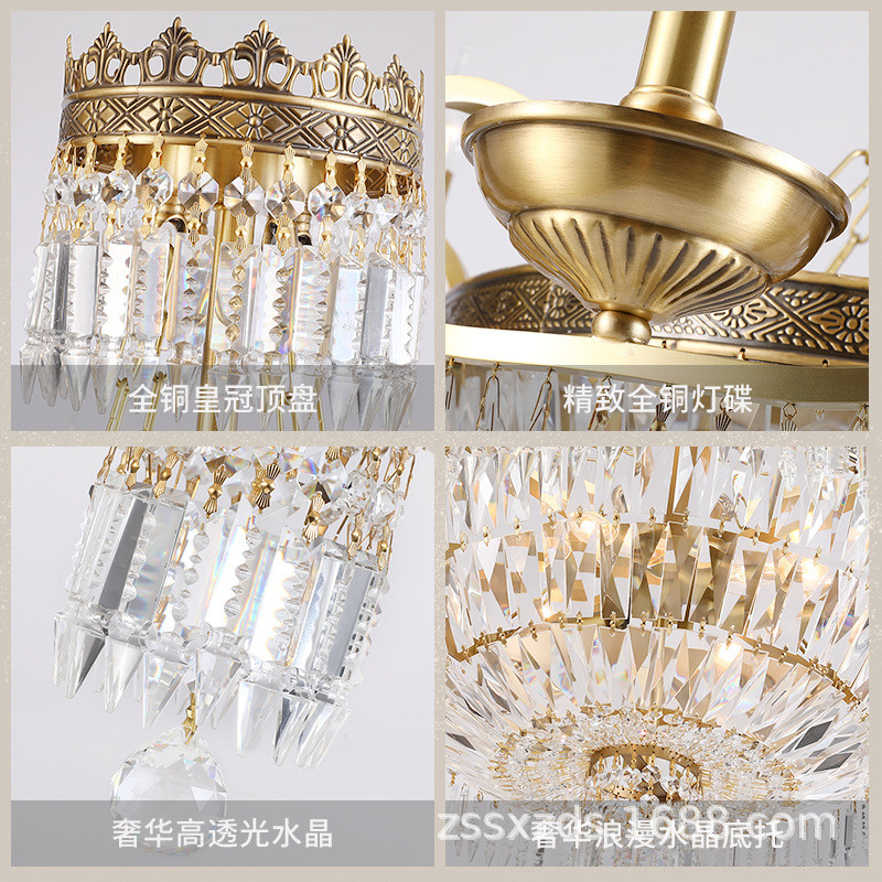 热销法式餐厅全铜水晶吊灯欧式别墅客厅轻奢卧室奢华大气纯铜创意