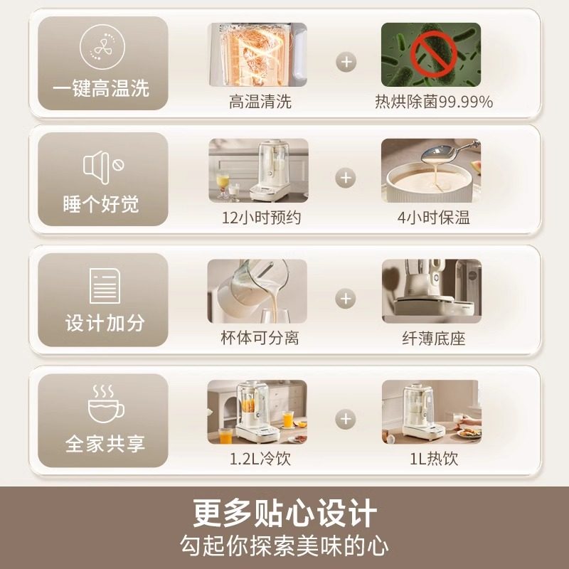 九阳豆浆机轻音家用全自动无渣破壁机辅食榨汁机料理机烹饪机