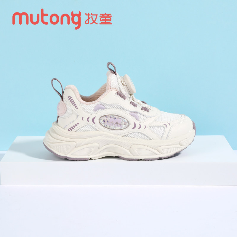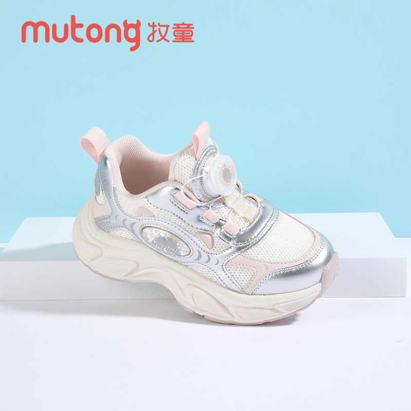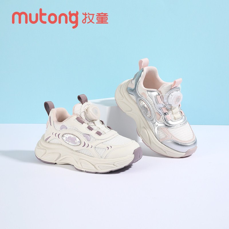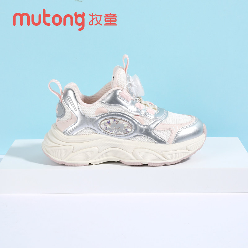 牧童童鞋女童运动鞋2025秋季新款春秋旋转纽扣休闲老爹鞋儿童跑步