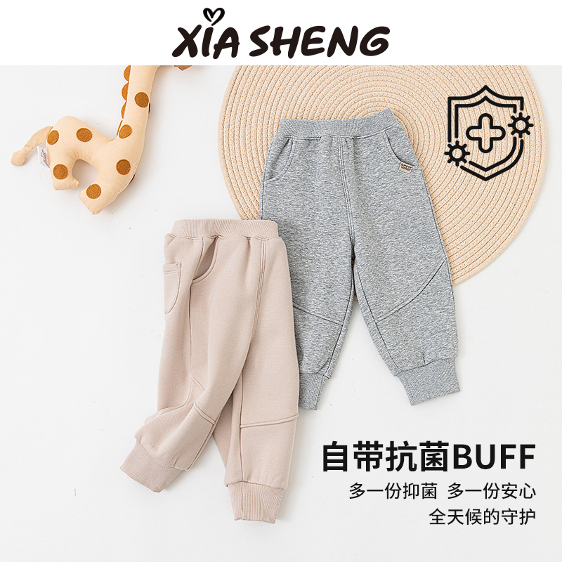 夏生暖氧吧加绒卫裤男女童束脚休闲裤子宝宝抑菌长裤儿童秋装新品