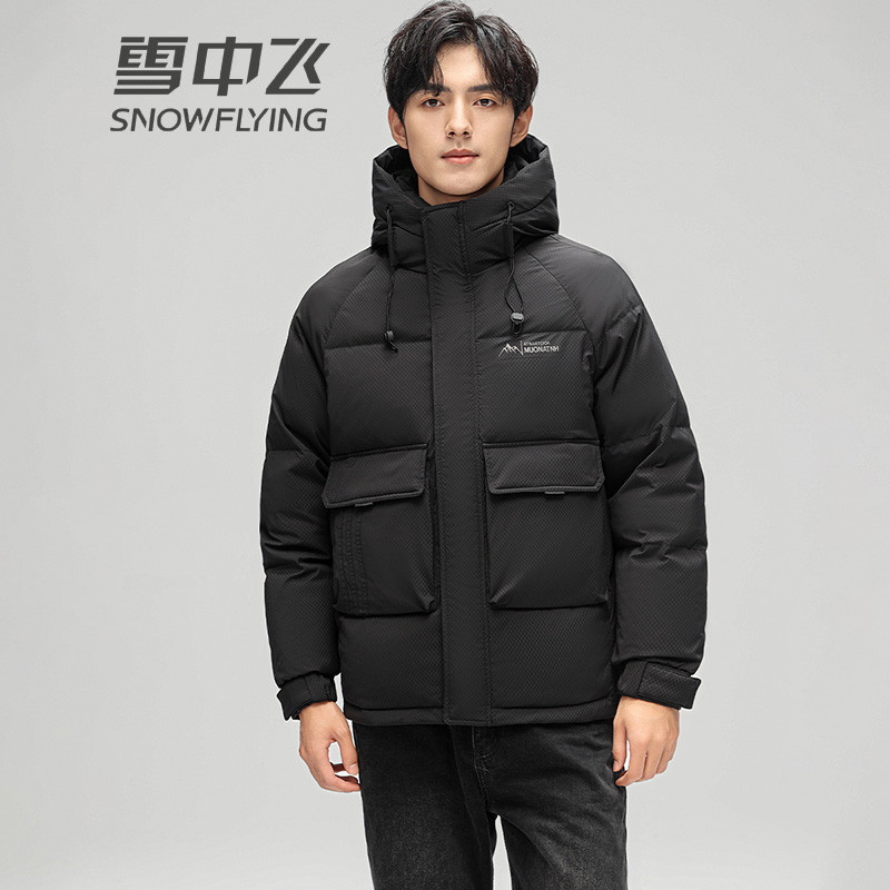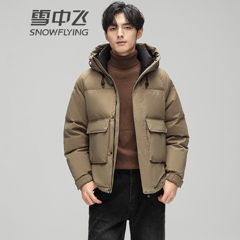 雪中飞羽绒服2025冬季新款男式短款连帽加厚保暖休闲时尚外套潮流