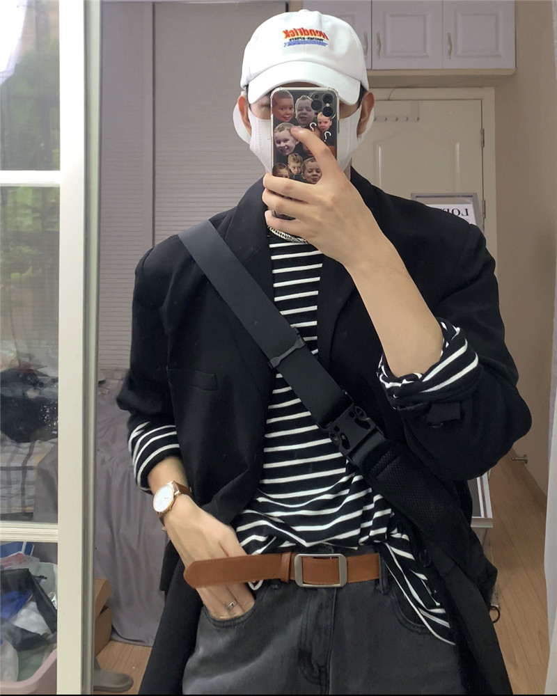 方人也屹 春秋潮流休闲西装外套男ins潮设计感小众宽松韩版小西装