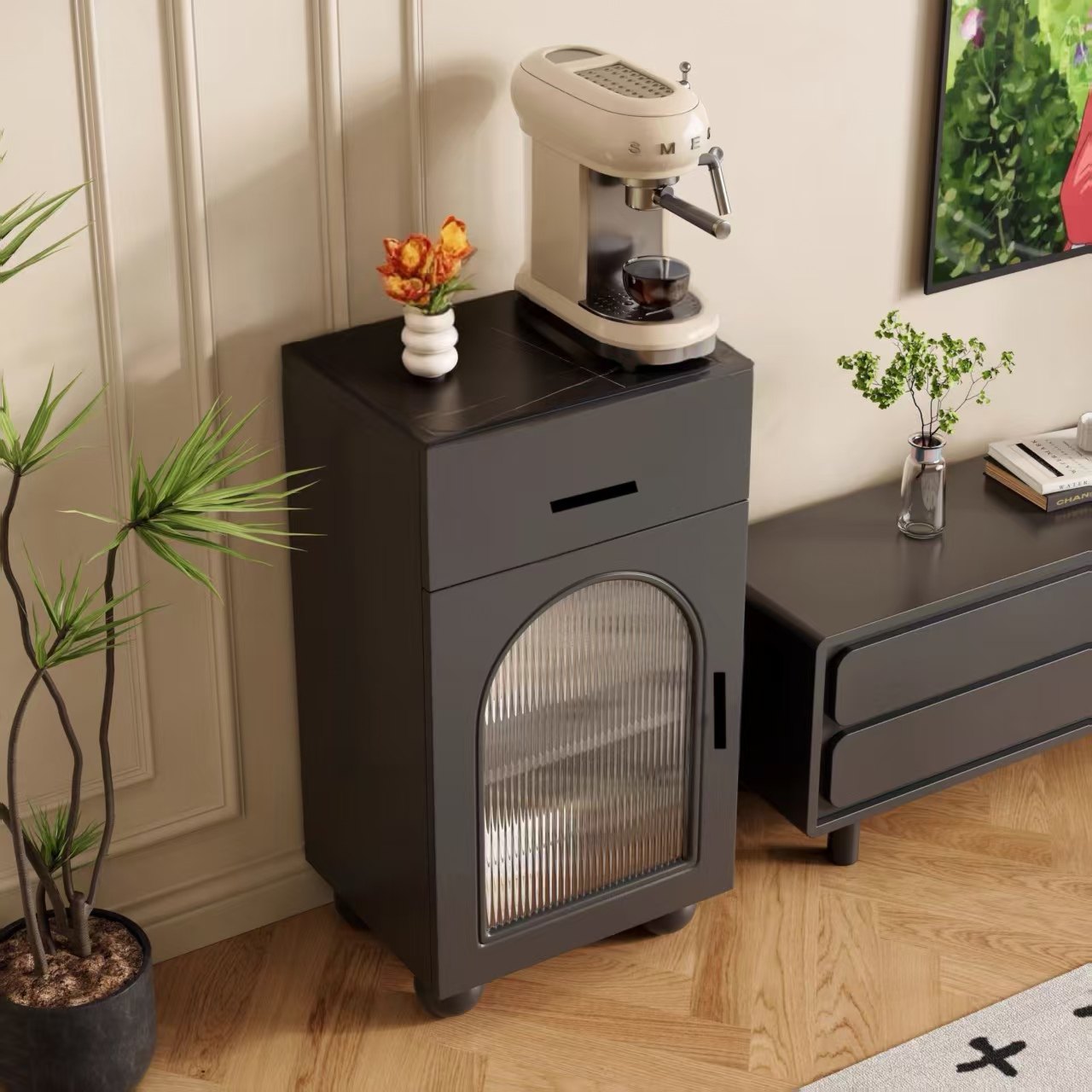 岩板餐边柜靠墙一体客厅茶水柜家用办公室茶吧咖啡机收纳边柜水桶