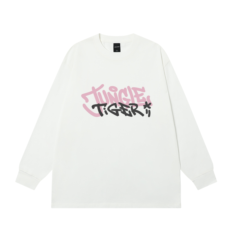 丛林老虎基础款字母涂鸦长袖T恤男女同款街头潮牌休闲纯棉打底衫