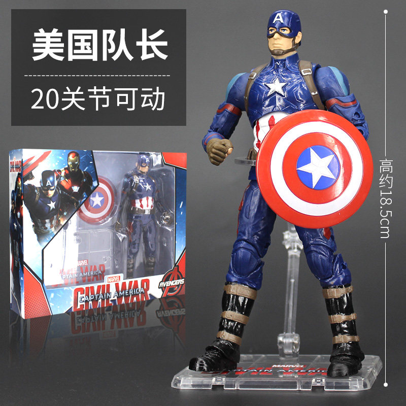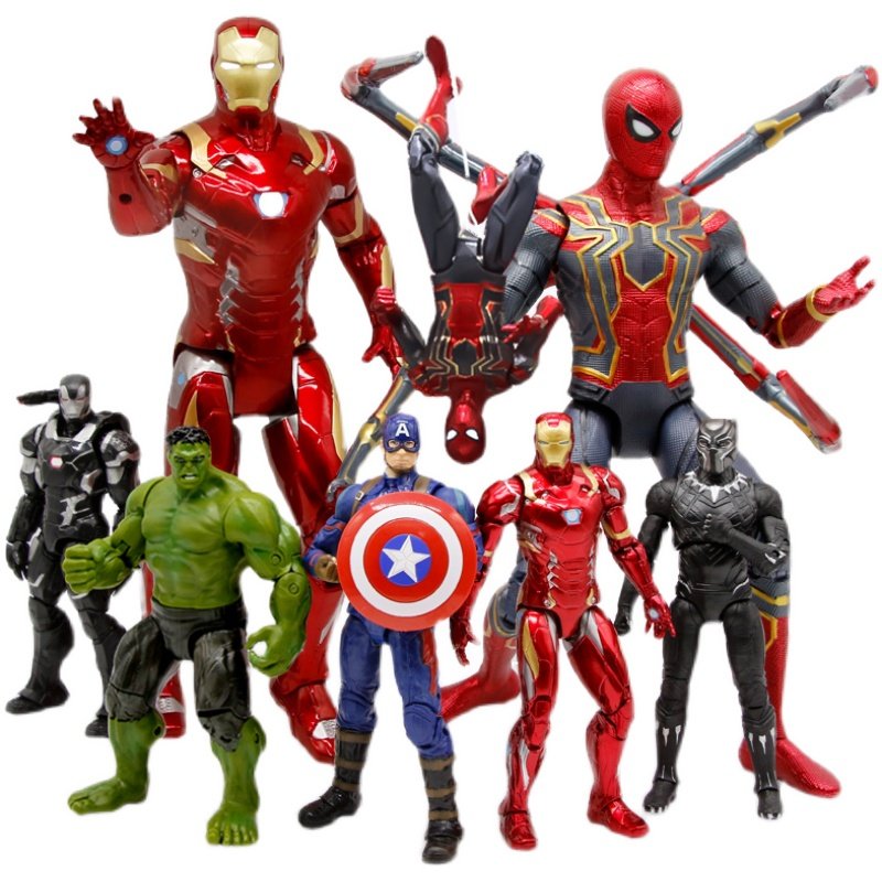 新款中动漫威周边手办钢铁蜘蛛侠美国队长灭霸雷神可动人偶摆件