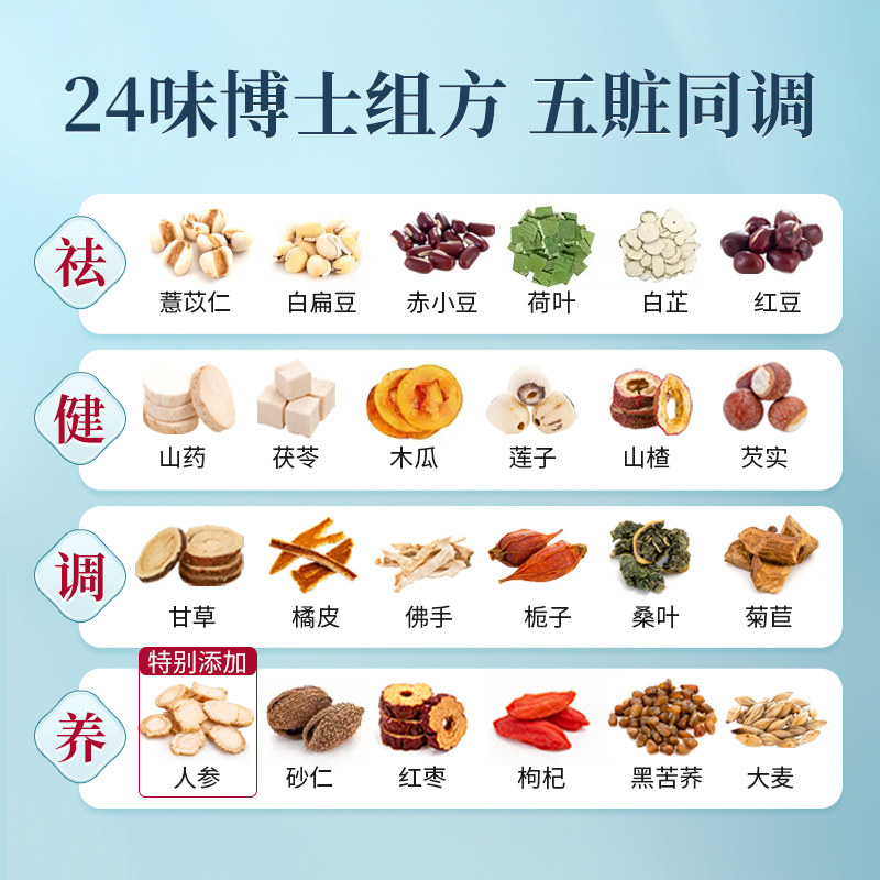 固本堂24味人参红豆薏米祛去茯苓薏湿茶除养生茶女性湿气花茶15罐