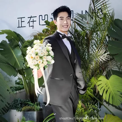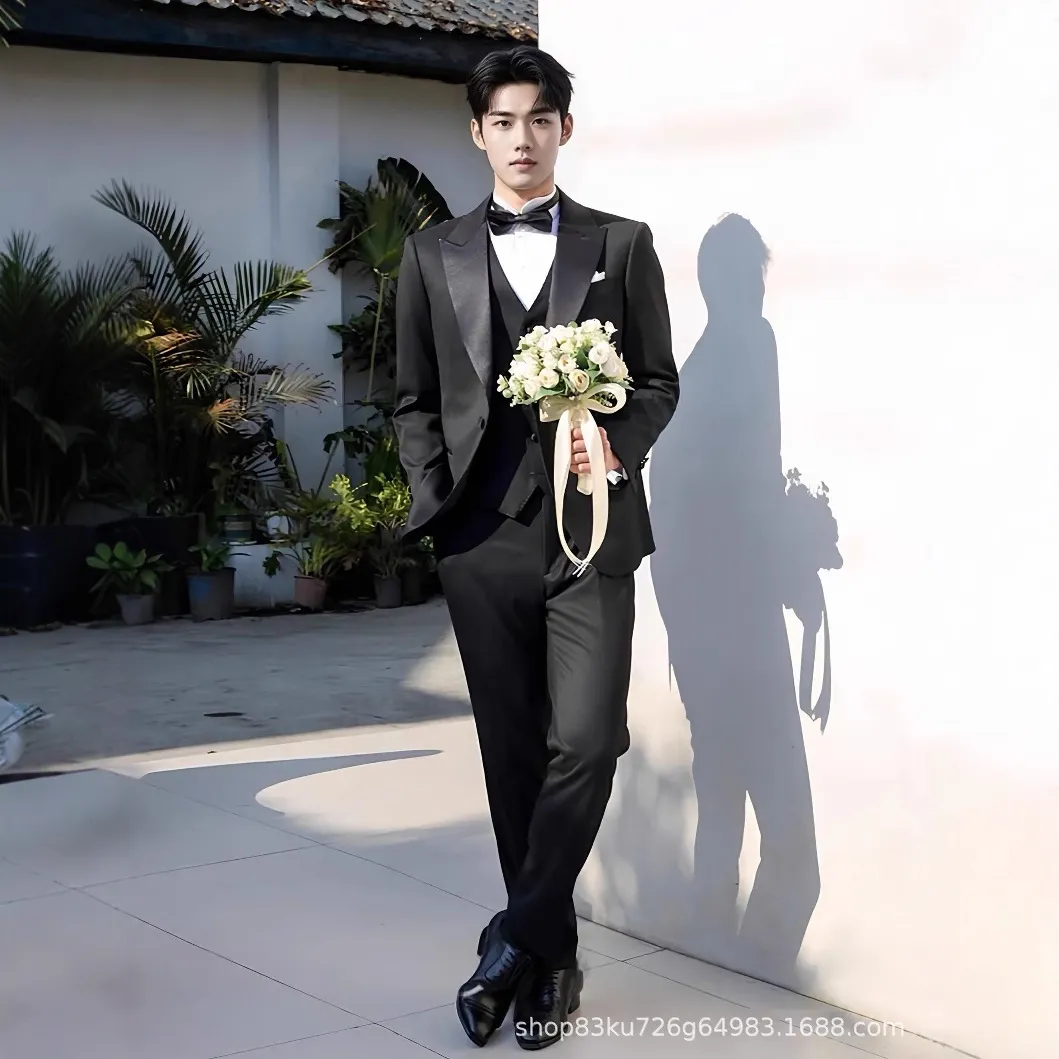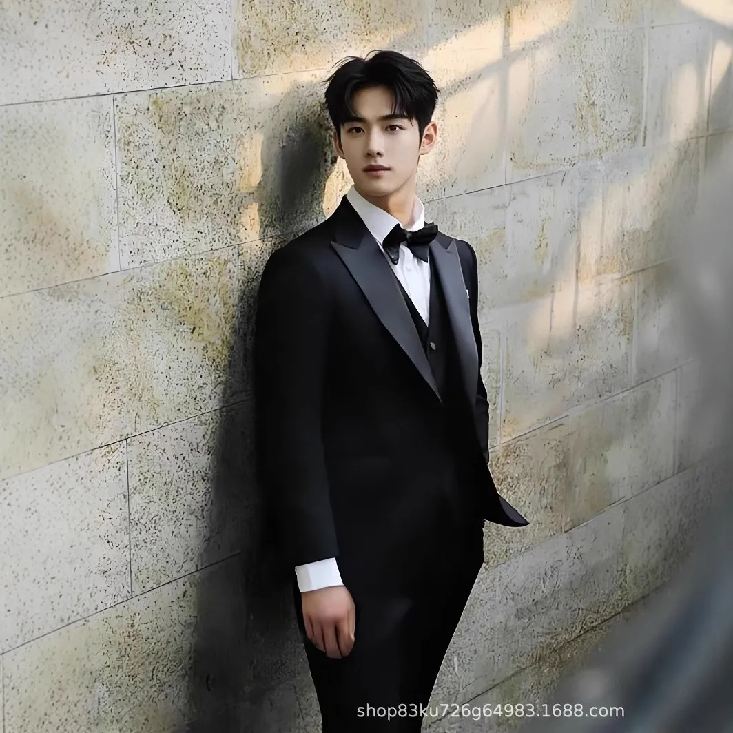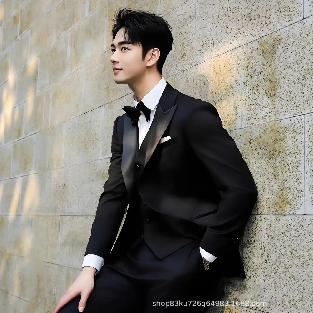 锦富25新郎高定婚礼西服套装男塔士多宴会合唱团西装新郎结婚礼服