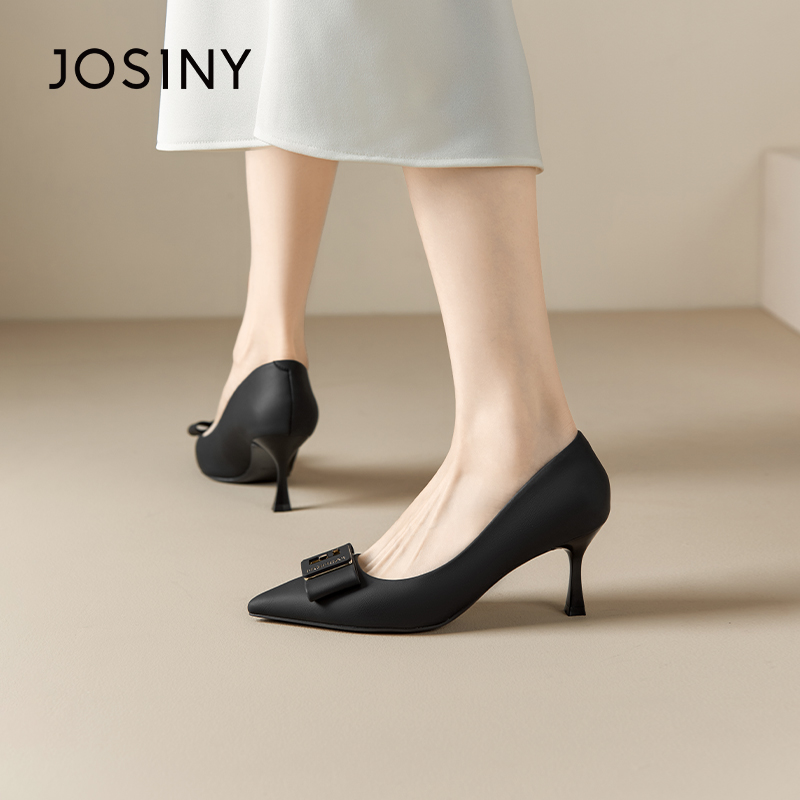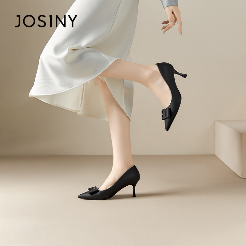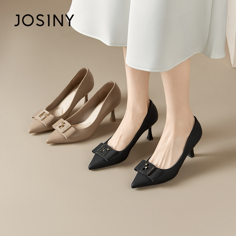 卓诗尼高跟鞋女新款春季尖头细跟蝴蝶结气质晚晚风单鞋配裙子