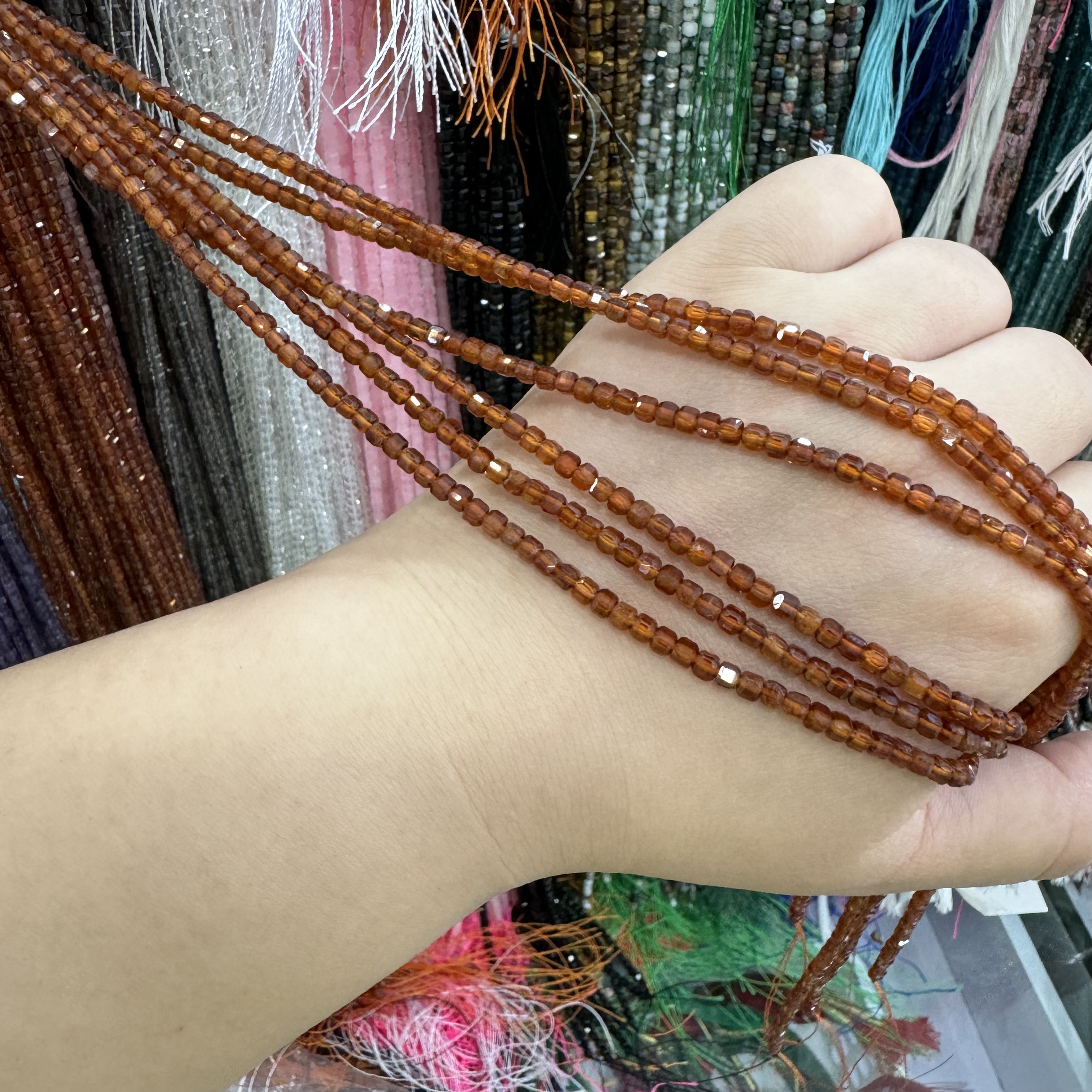 3Mm方糖天然橙石榴石散珠半成品一条38厘米Diy项链手链配珠串珠