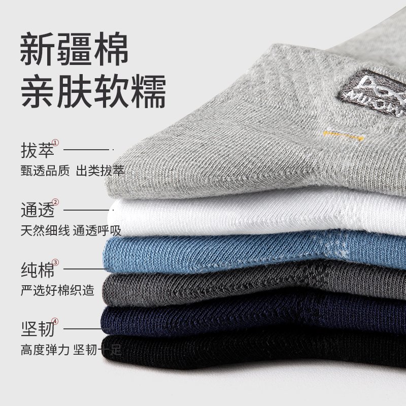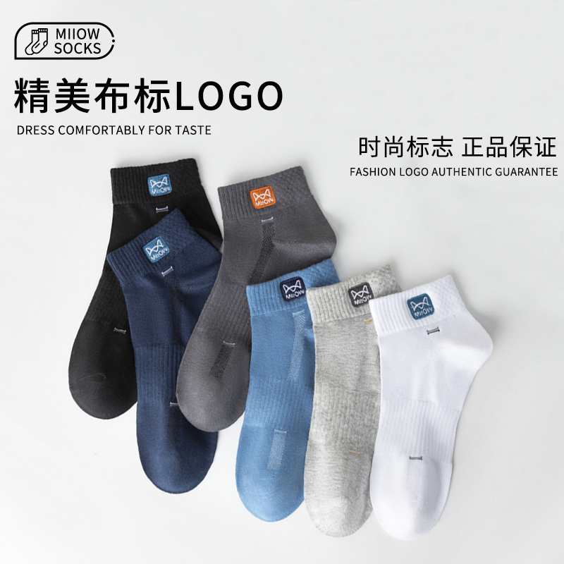 猫人纯棉袜子男款夏季防脚气防臭吸汗透气全棉男士黑色运动短筒袜