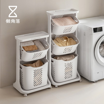 懒角落脏衣篓脏衣篮洗衣服收纳筐置物架双层推车家用可分类区带轮