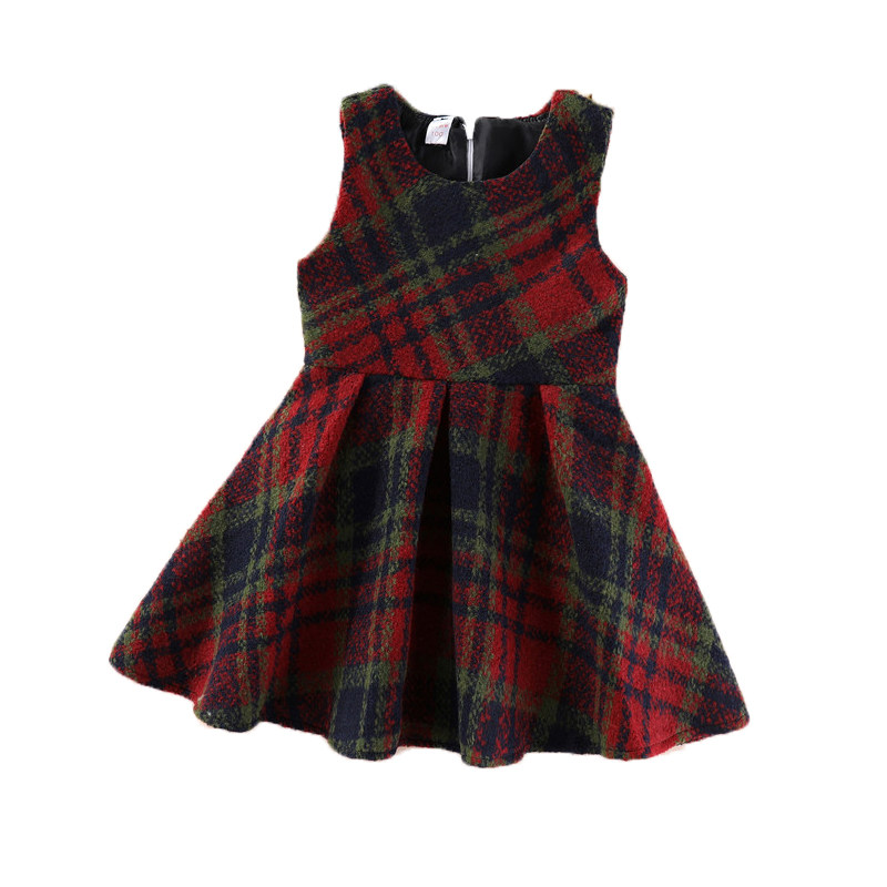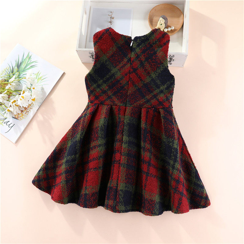 女童毛呢背心裙春秋冬连衣裙韩版宝宝无袖马甲裙中小童女孩格子裙