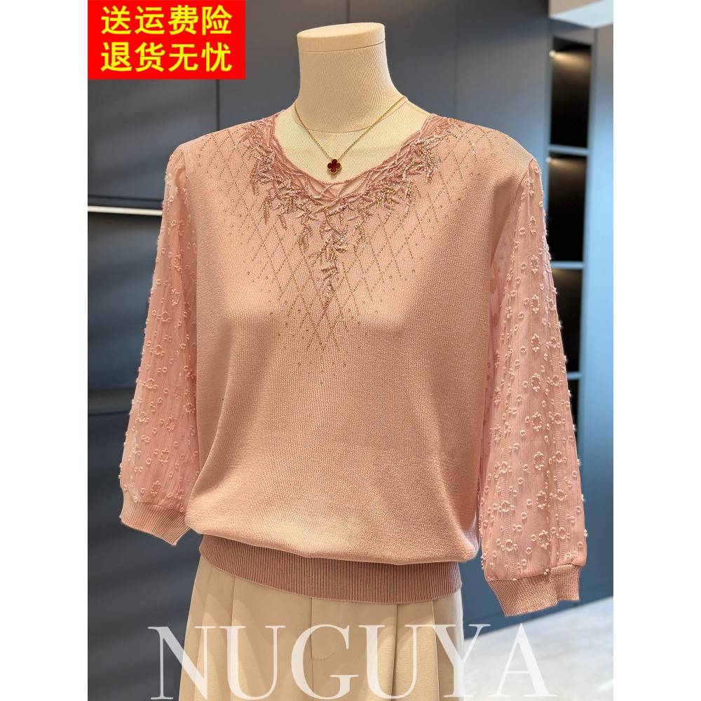 时尚洋气妈妈装七分袖雪纺针织衫春夏新款上衣减龄气质中老年小衫
