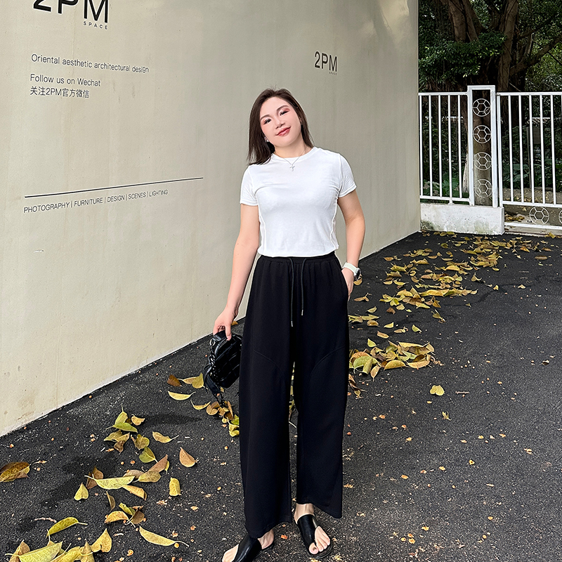 巨显瘦空气层遮胯香蕉裤大码女装新款200斤胖妹妹mm宽松阔腿长裤