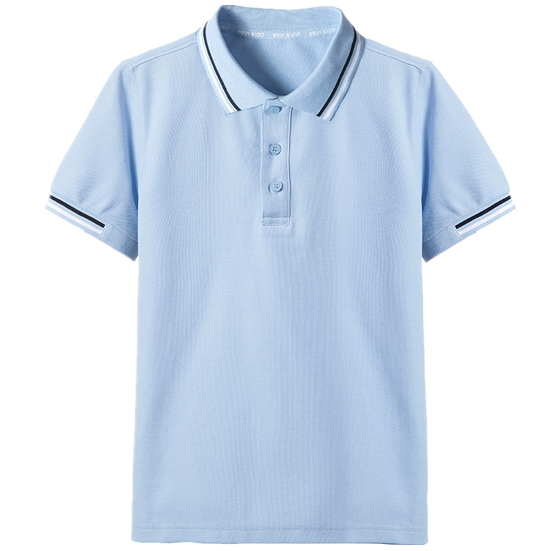 伊顿纪德校服男女童polo衫珠地网眼学院浅蓝色短袖T恤10T046惠