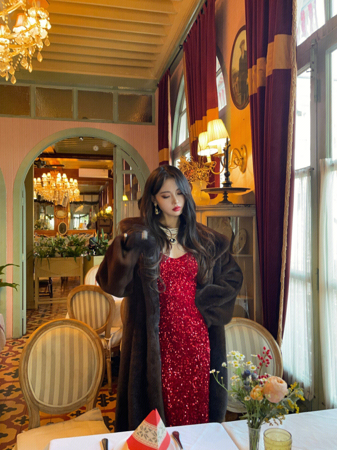 红色连衣裙礼服吊带裙