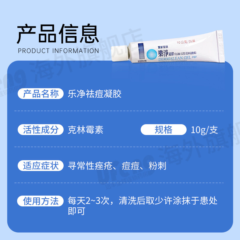台湾乐净祛痘凝胶10g红肿发炎祛痘克林达霉素寻常玫瑰痤疮进口版