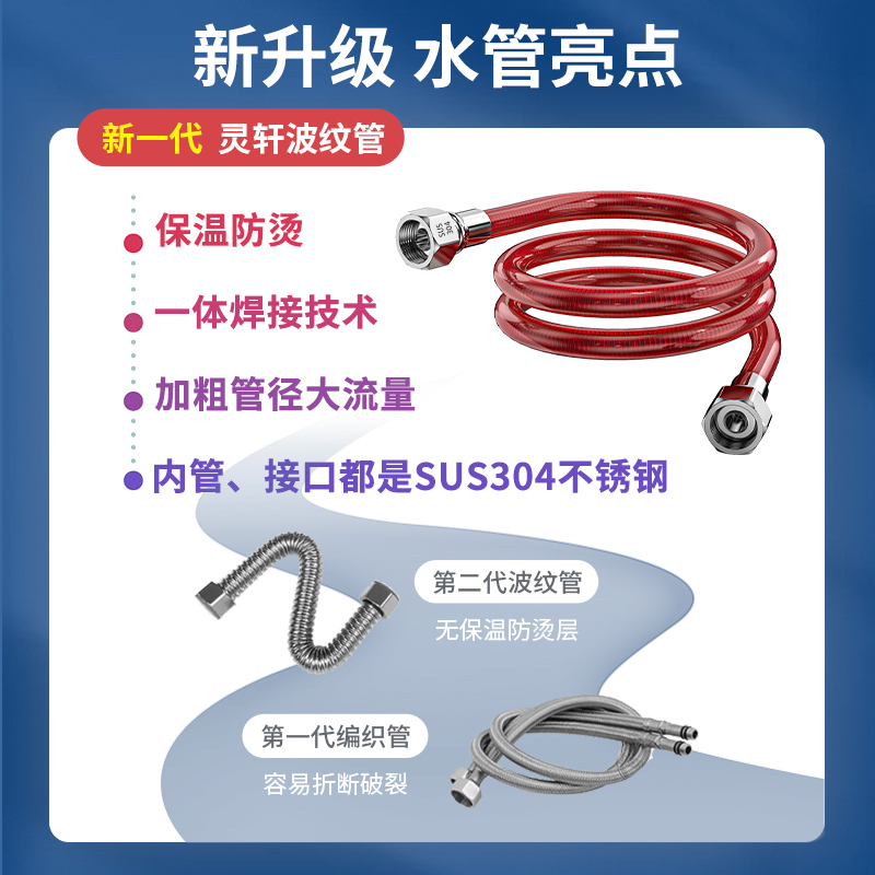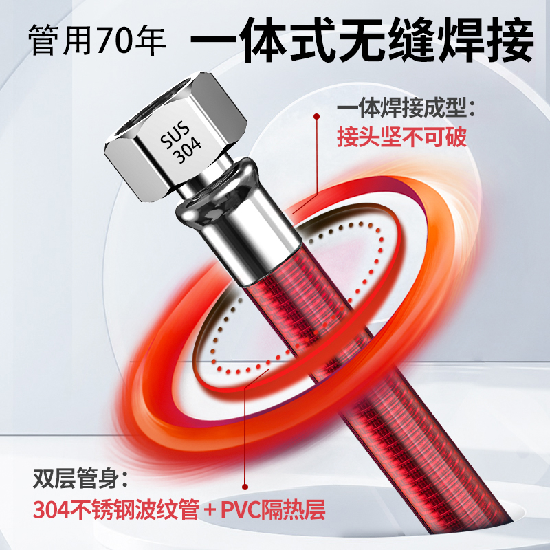 适用于美的海尔防爆304不锈钢波纹管燃气电热水器马桶进出水管4分