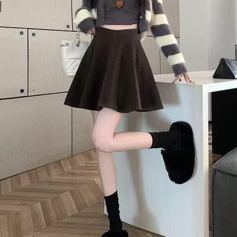 黑色毛呢半身裙高腰显瘦