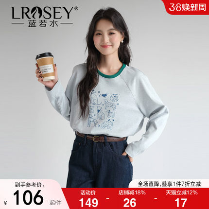 蓝若水大码女装圆领印花上衣胖mm2026春装新款宽松遮肚子长袖t恤