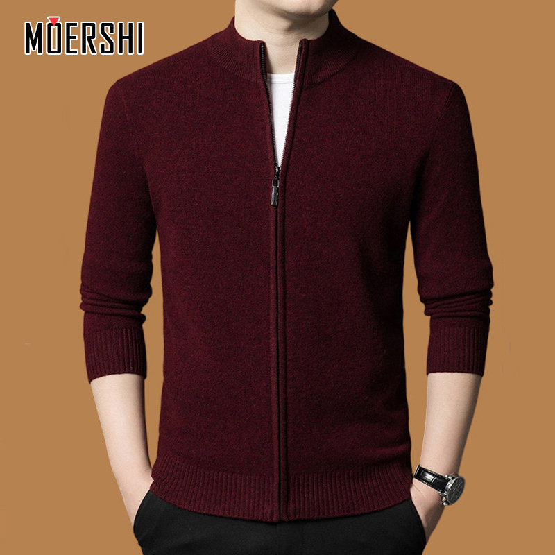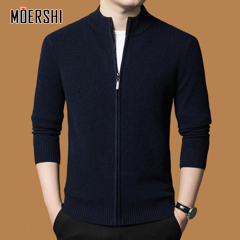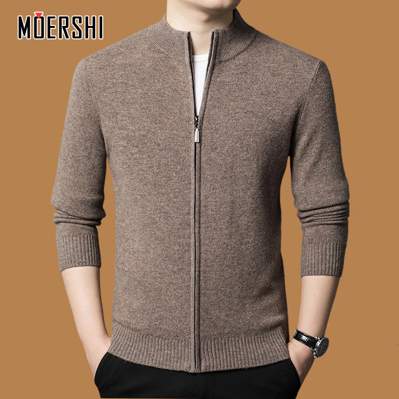 鄂尔多斯市100%羊毛衫男款纯色拉链保暖毛衣新款休闲针织打底衫