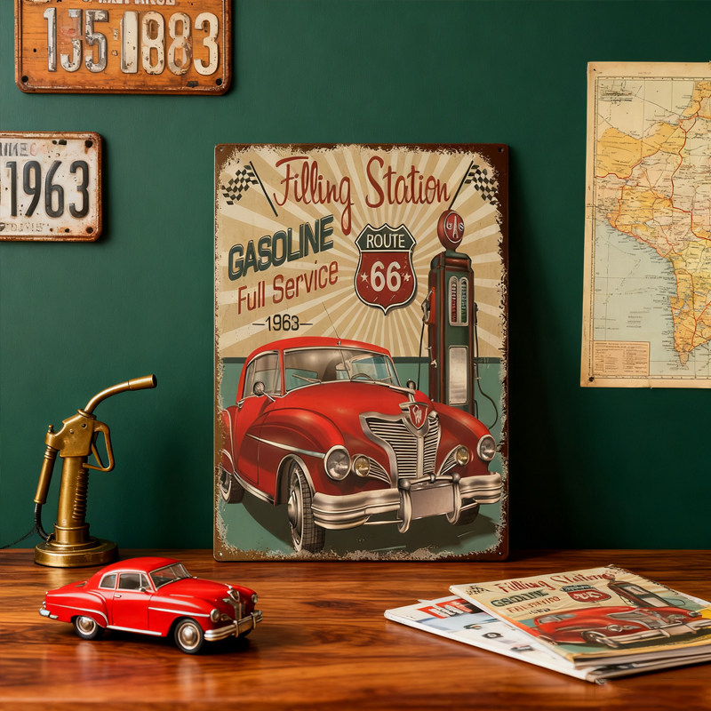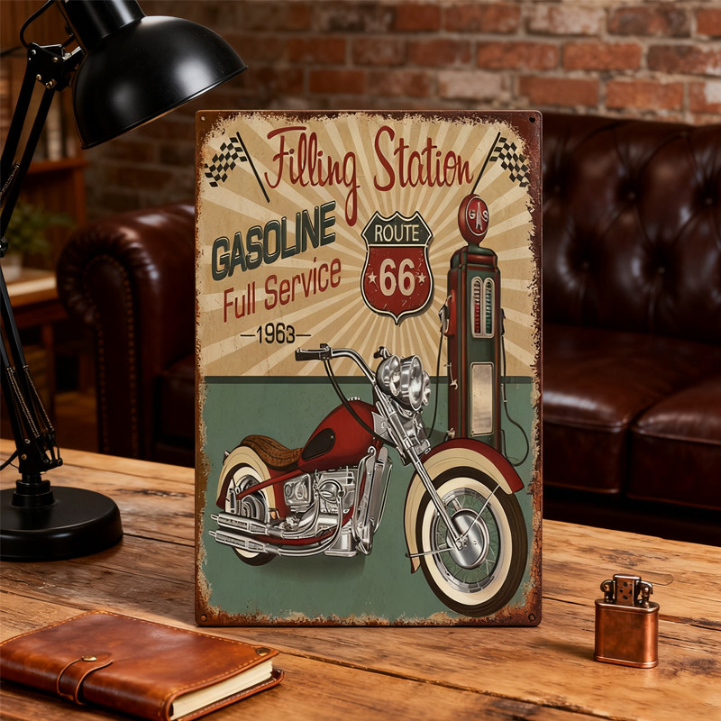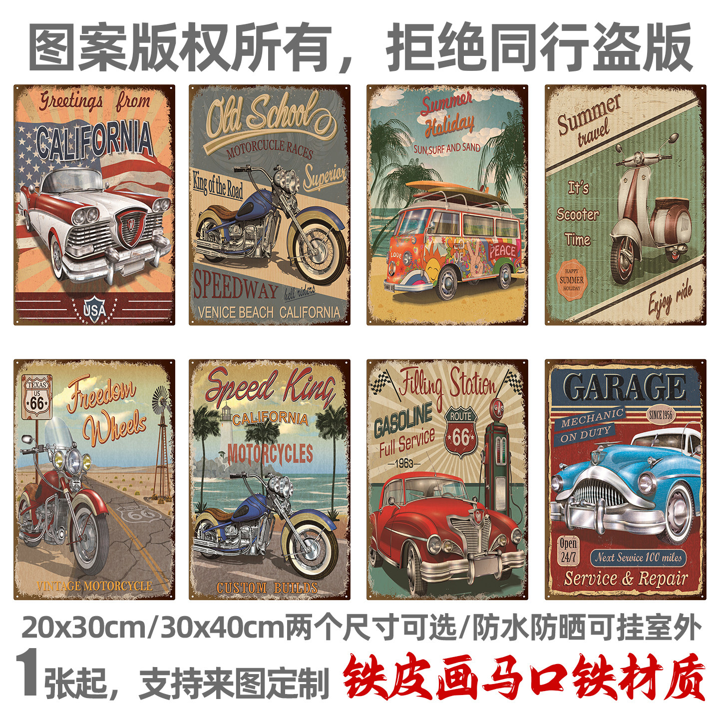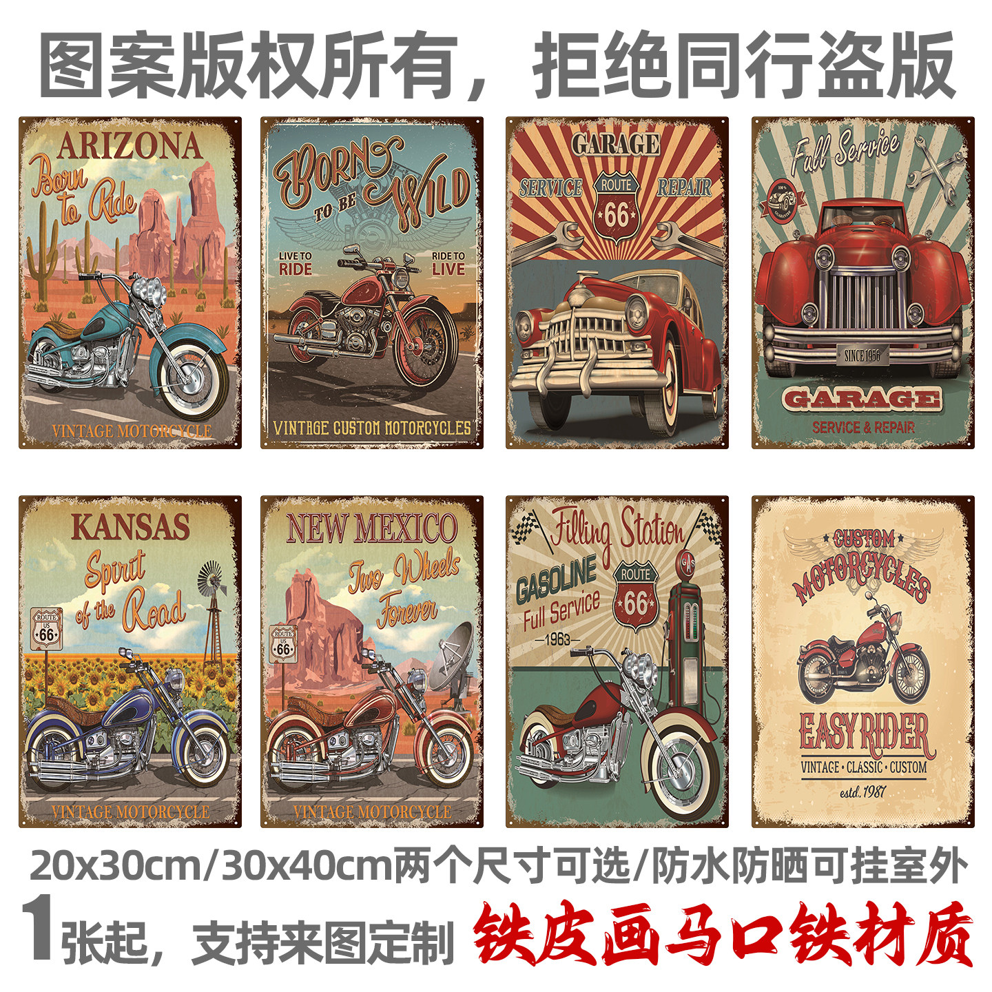 复古铁皮画美式复古机车餐厅酒吧车库饭店咖啡馆壁饰墙面装饰挂画
