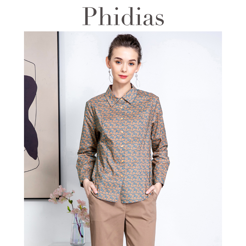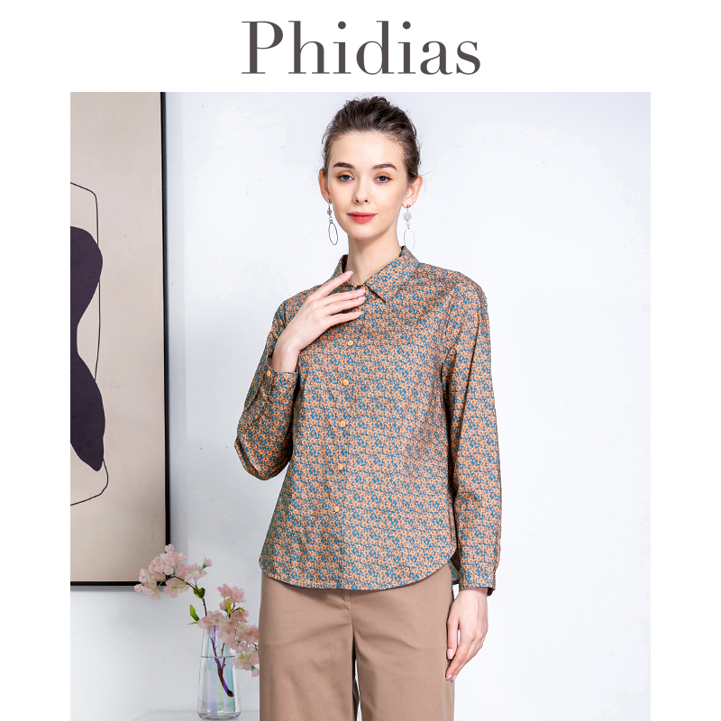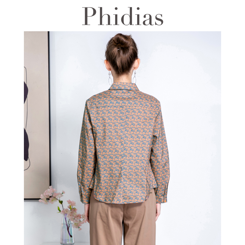 Phidias复古长袖衬衫女2024春新款设计感小众印花高级感百搭上衣