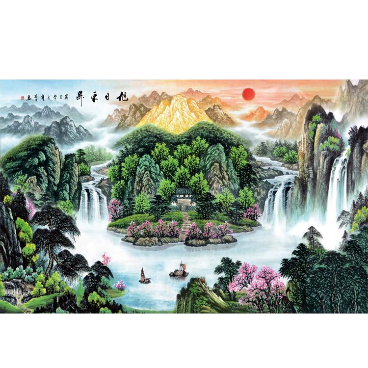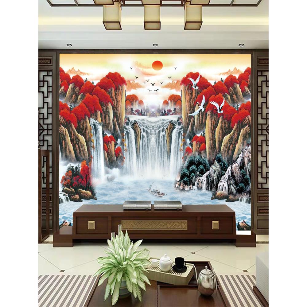 山水画墙贴背景墙壁画墙布墙画3d立体贴画墙纸自粘客厅壁纸装饰画
