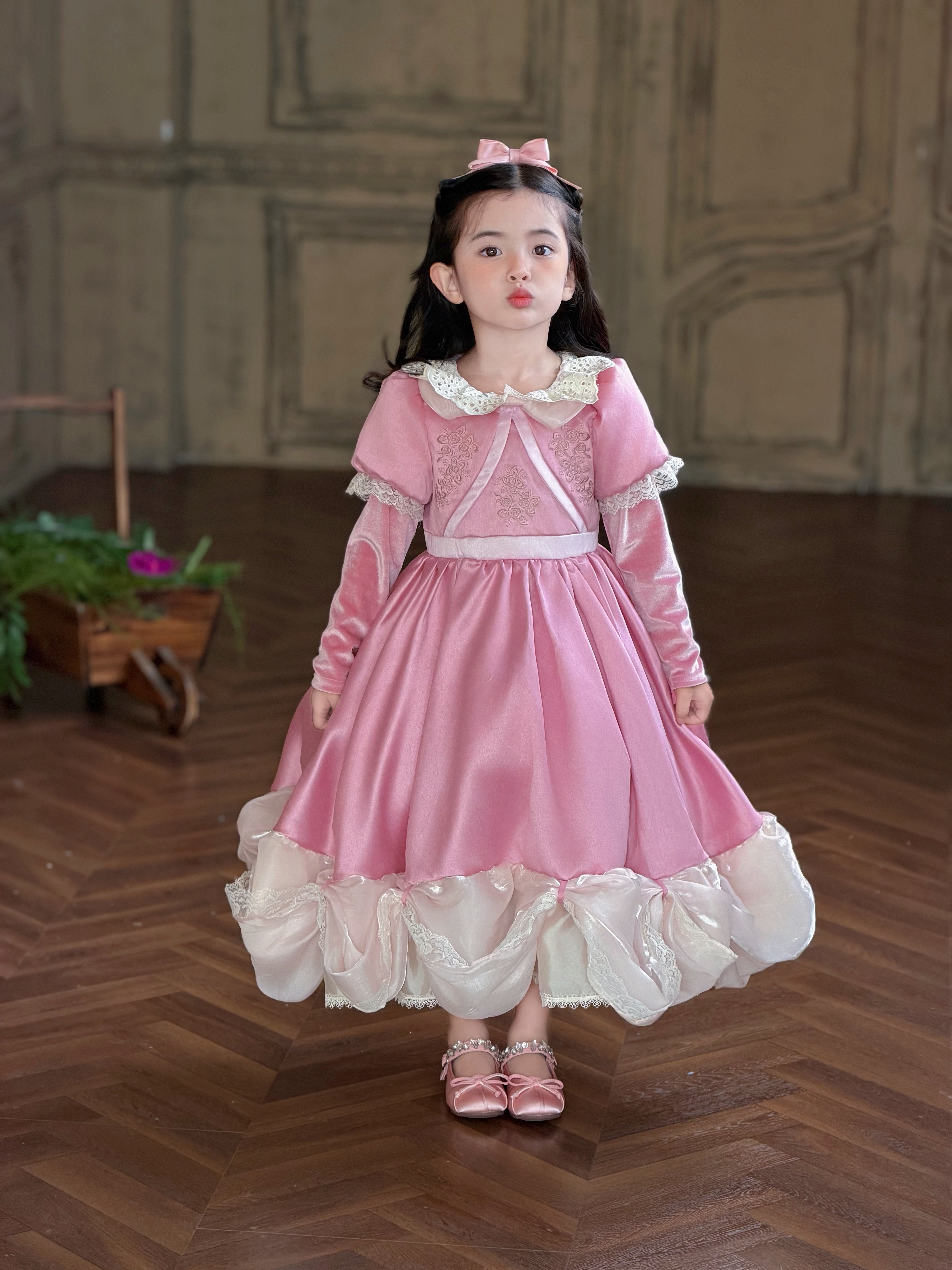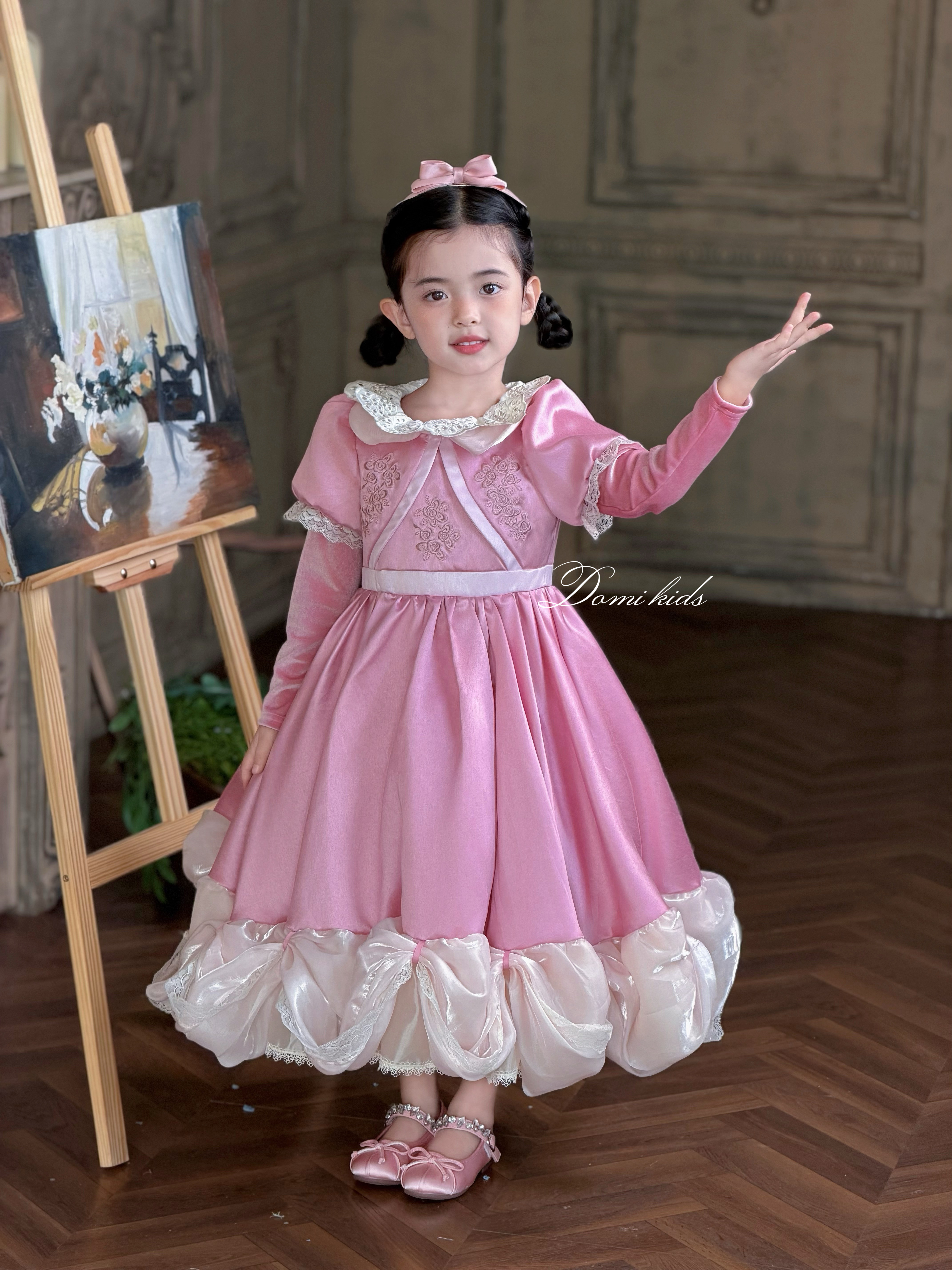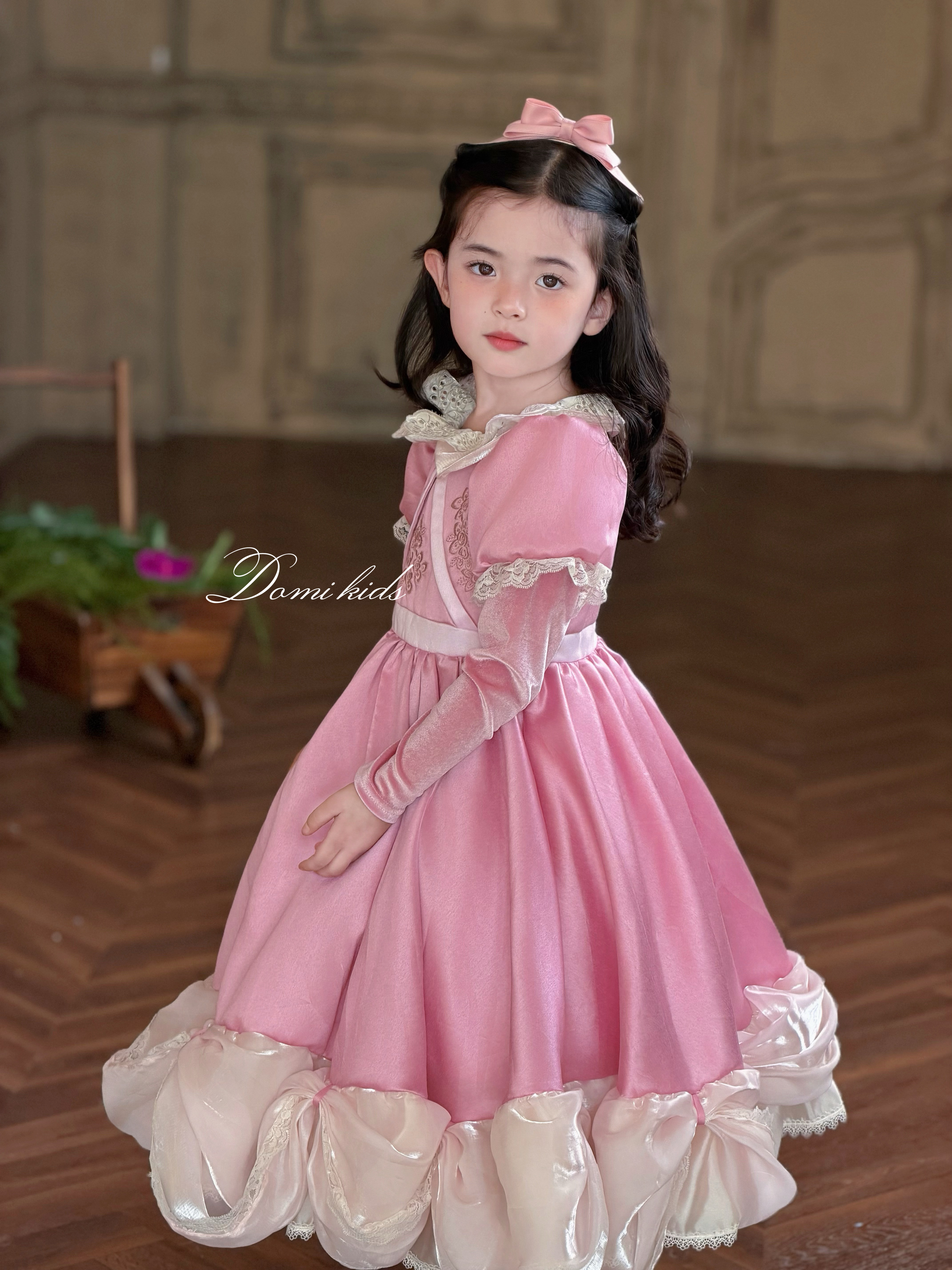 Domi女童粉色辛德瑞拉公主连衣裙儿童生日礼服灰姑娘迪斯尼公主裙