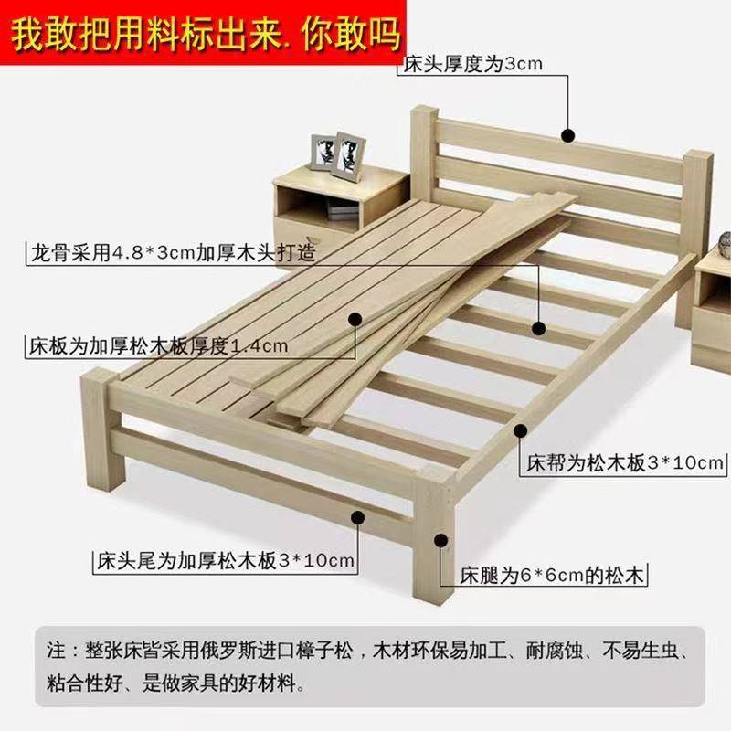 实木床实木双人床1.5m1.8米学生床1米单人床1.2员工床宿舍单人