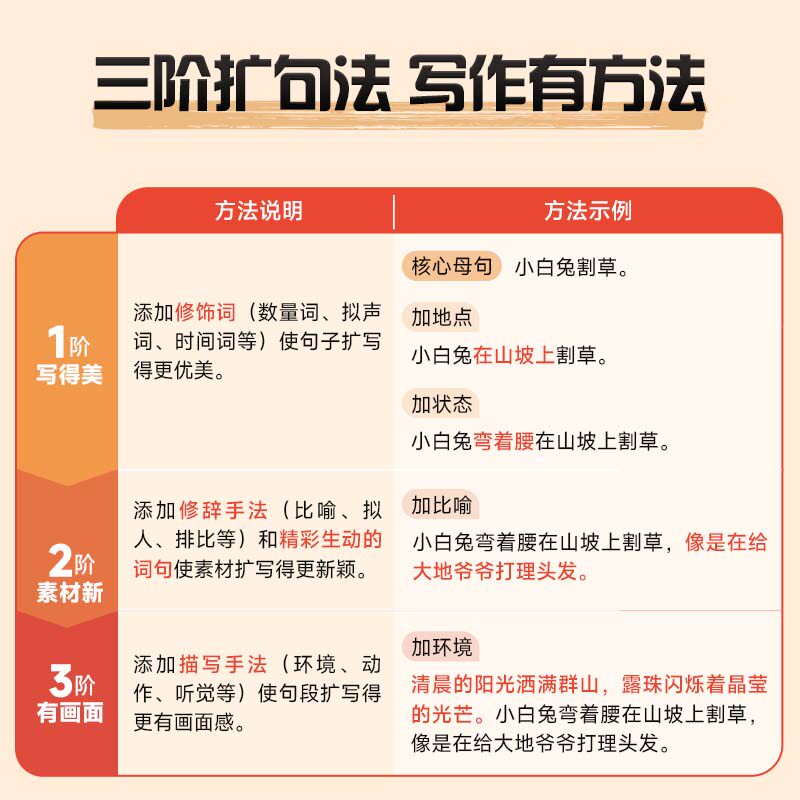 学而思三阶扩句法紧扣新课标同步语文教材小学作文方法书1-6年级140个高热度场景2000+分级好词素材优美句子看图写话晨读晚诵