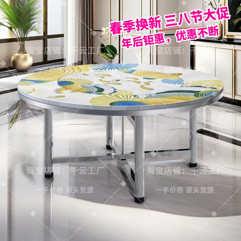 加厚转盘圆桌彩图圆餐桌饭桌吃饭台商用大圆台桌子